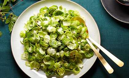 The secret to a stress-free Thanksgiving menu: speedy stovetop side dishes like this one, which can be quickly put together at the last minute, while the turkey is resting—plus, it doesn't require any oven space. To get a jump start on this easy sauté, one Epicurious member recommends prepping all the ingredients ahead and storing them in plastic. Keep the butter, shallots, and Brussels sprouts in the refrigerator; the rest can stay at room temperature. This recipe is generous for 8 people, but leftovers pair perfectly with fried eggs for brunch the next day.