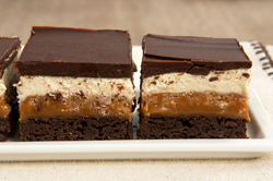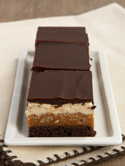 These brownies, my friends, are the perfect choice. They are so much more than brownies, though. There’s caramel and nougat and even more chocolate. The finished brownies are sweet and tall and rich and absolutely gorgeous and delicious!